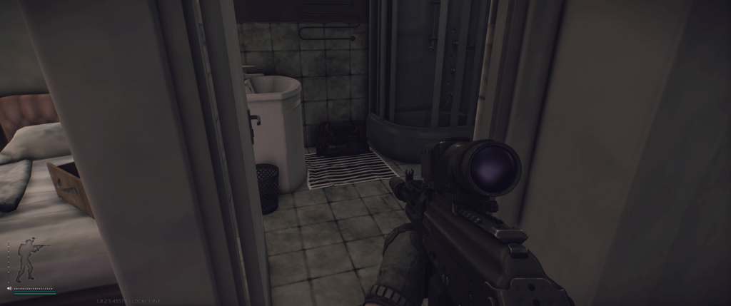 Комната с 2мя помещениями и переходом через балкон, в ванной есть еще сумка не забывайте про нее. На балконе оружейный сейф и шкаф с оружием.