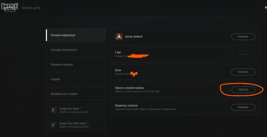 Приключение начинается с сброса аккаунта и выглядит это следующим образом: