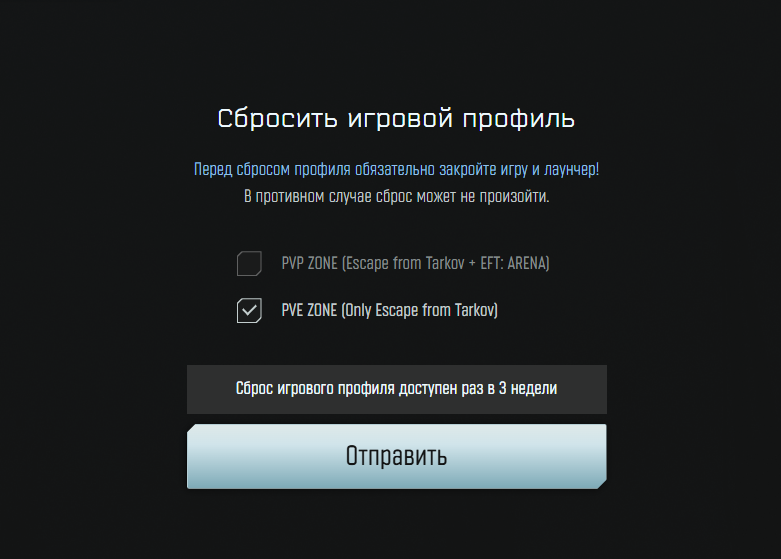 Проходить буду на PVE поэтому и сбрасываю PVE: