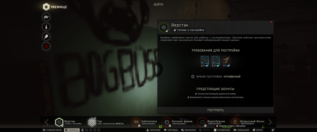 Верстак (Workbench) в Escape from Tarkov — это один из самых важных модулей убежища, который открывает перед игроком широкие возможности по кастомизации снаряжения и пассивному заработку. Без его прокачки выживать в Таркове становится значительно сложнее. В этом гайде разберем, зачем нужен верстак, как его использовать и почему он должен стать вашим приоритетом.