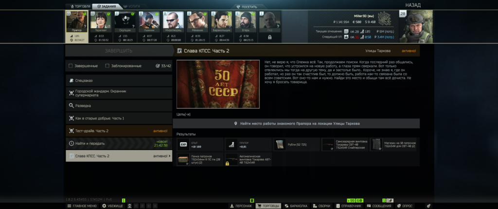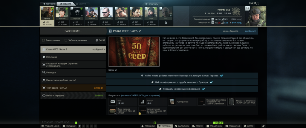 10к опыта и + 0,01 к репе с Прапором отличная новость по завершению квеста.