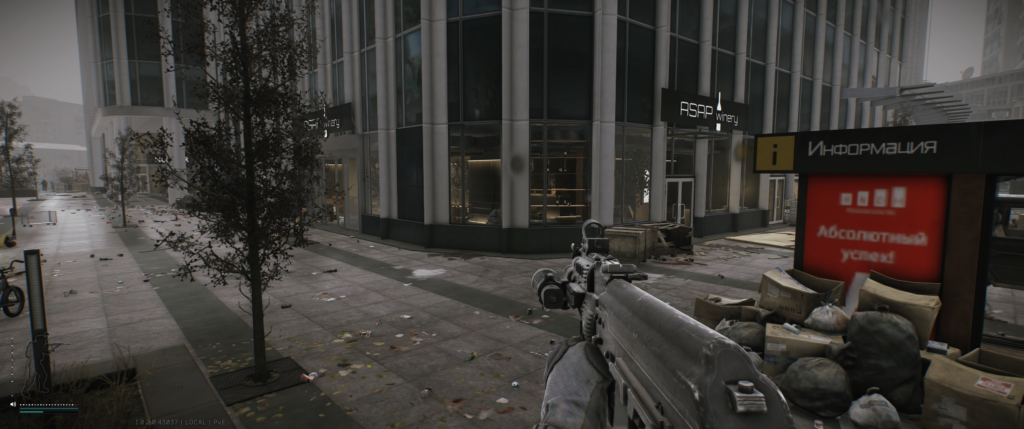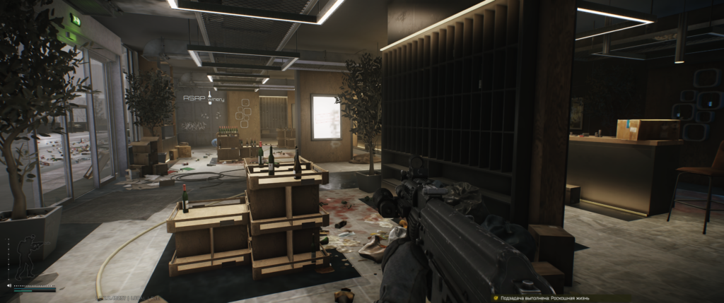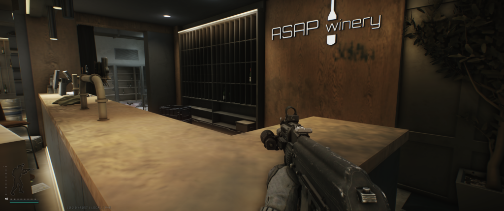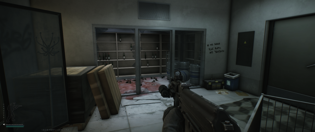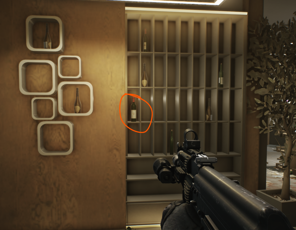 На втором этаже — редкий спавн, но народ находил. Если стоишь лицом к зданию Террагрупп, вход в Skyside через фойе. Слева лестница, поднимайся на второй этаж. Иногда вино стоит там.