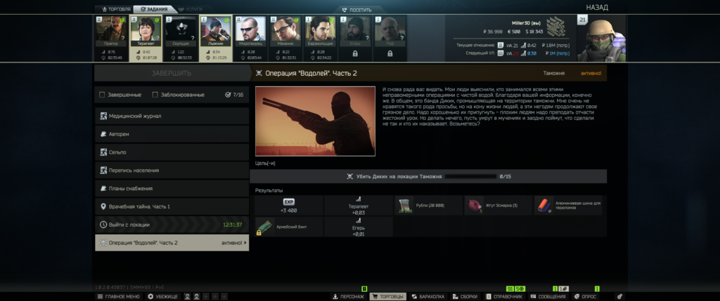 • Убийства диких при игре за самого Дикого (в режиме Scav) не учитываются в прогрессе квеста. Убивать нужно только играя за ЧВК.