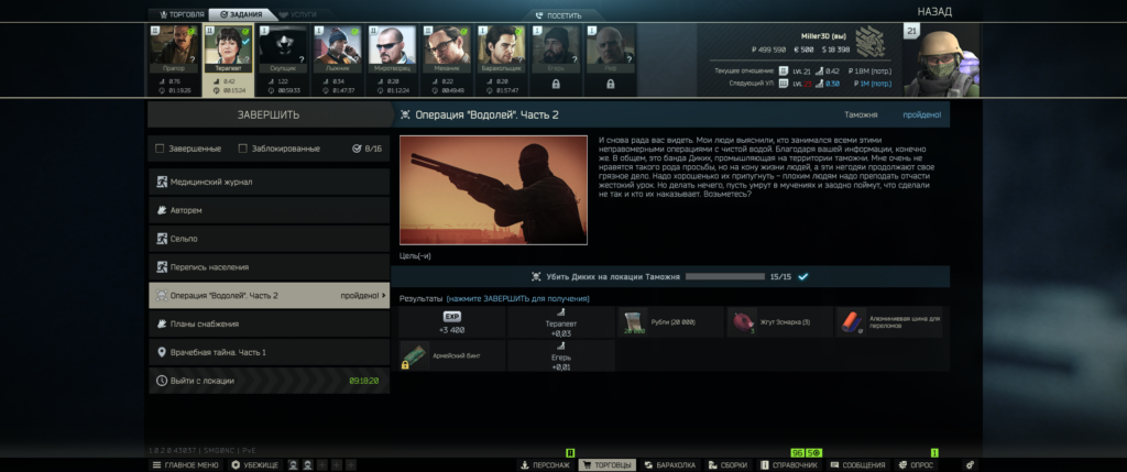 • Репутация: +0.03 у Терапевта+0.01 у Егеря.