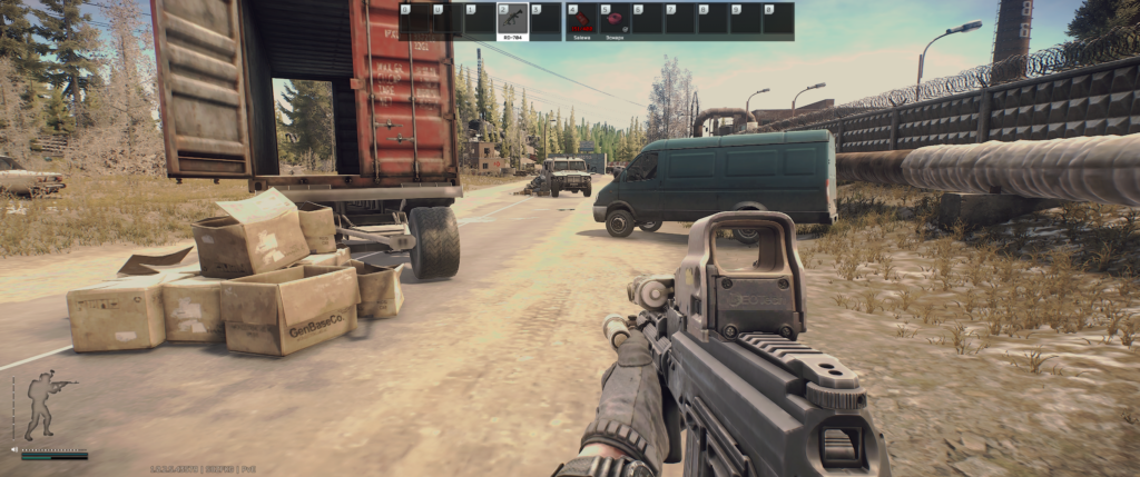 - Первый: У блокпоста (со стороны бойлерной). Стоит прямо у КПП.