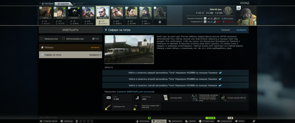 Суть квеста: Забежать на Таможню и пометить три военных авто «Тигр» специальными маркерами которые можно купить у прапора или барахолке.