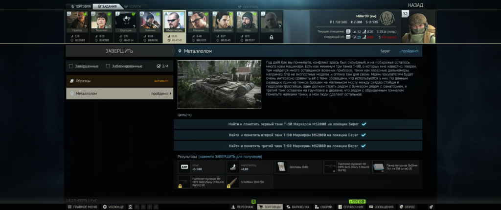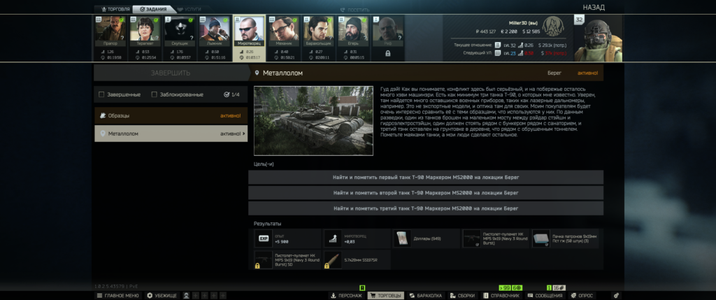 Суть квеста: Забежать на Берег и пометить три старых танка Т-90 военными маркерами. Обычная прогулка с пользой.