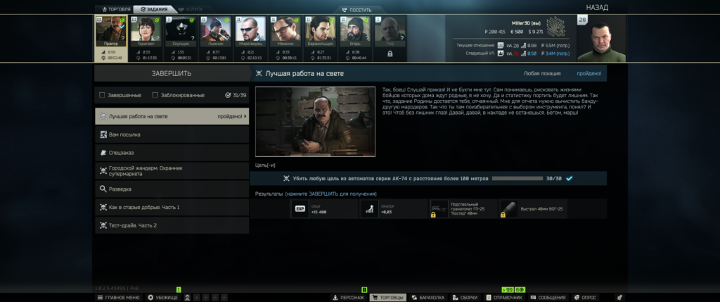Сдаемся прапору и получаем 15к опыта и 0,03 к репутации возможность купить подствольник для АК и выстрелы 40мм для подствольника.