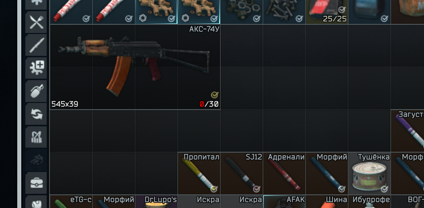 - Оружие должно занимать 6 ячеек (приклад нужно сложить).