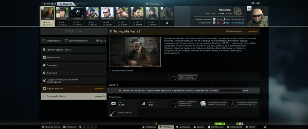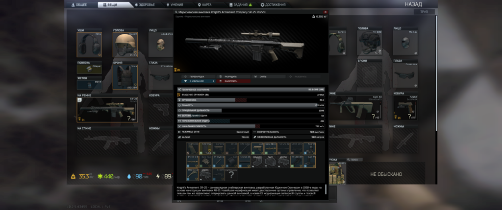 По квесту выдается SR-25 с нужным глушителем и прицелом. Если потеряли — придется собирать самим. Нажимайте сохранить сборку или сделать скриншот.