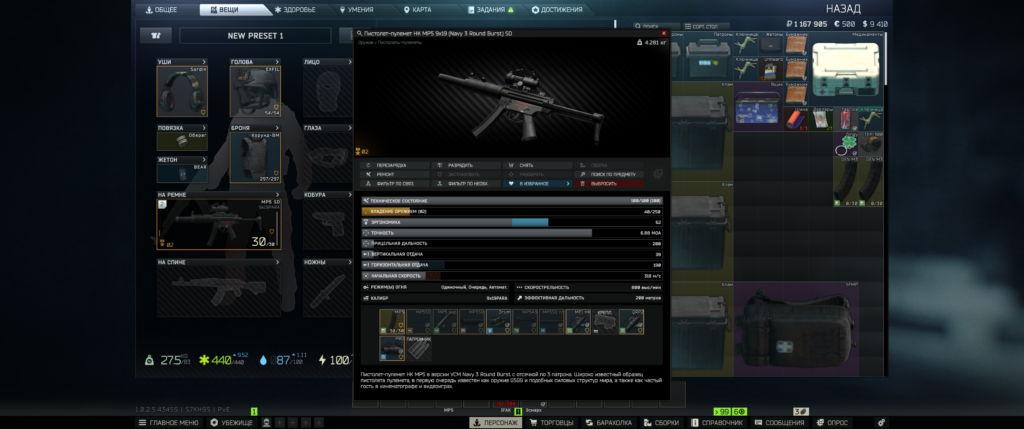 У меня было несколько квестов на Улицах Таркова поэтому первым делом отправился туда да и ЧВК там сильно больше в PVE и бегать не так далеко. Патрон набрал различных но надо понимать что калибр этой MP больше напоминает стрельбу горохом.