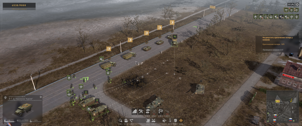Если колонна встала и не едет на стрелочки подведите своих бойцов и конвой начнет движение